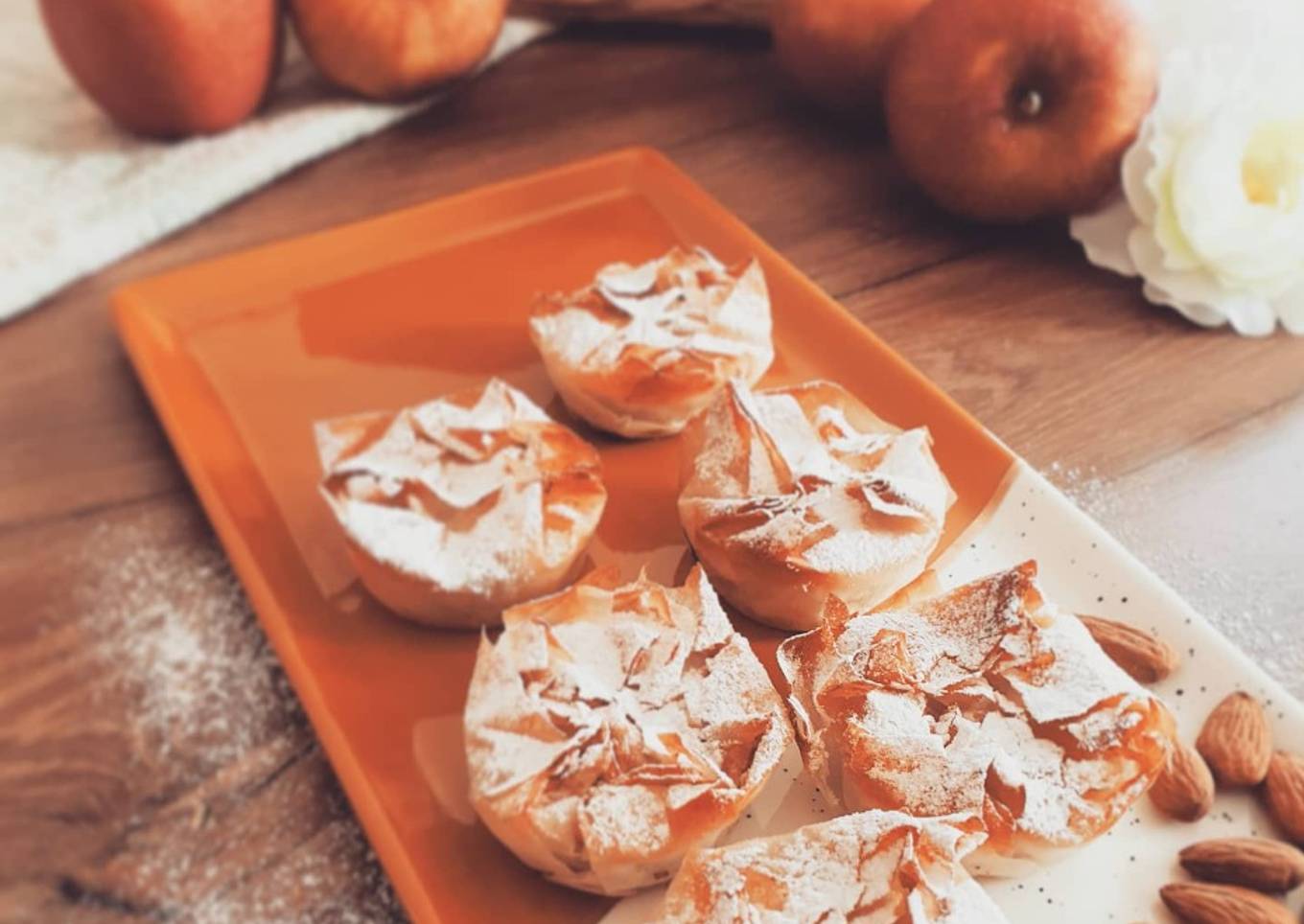 En cette chaleur estivale , j'avais envie de quelque chose de pas trop sucré et avec mon fruit préféré la pomme bien sûr. Et quoi de mieux pour aller avec la pomme que des amandes caramélisées, de la cannelle, le tout enrobé comme un paquet cadeau croustillant