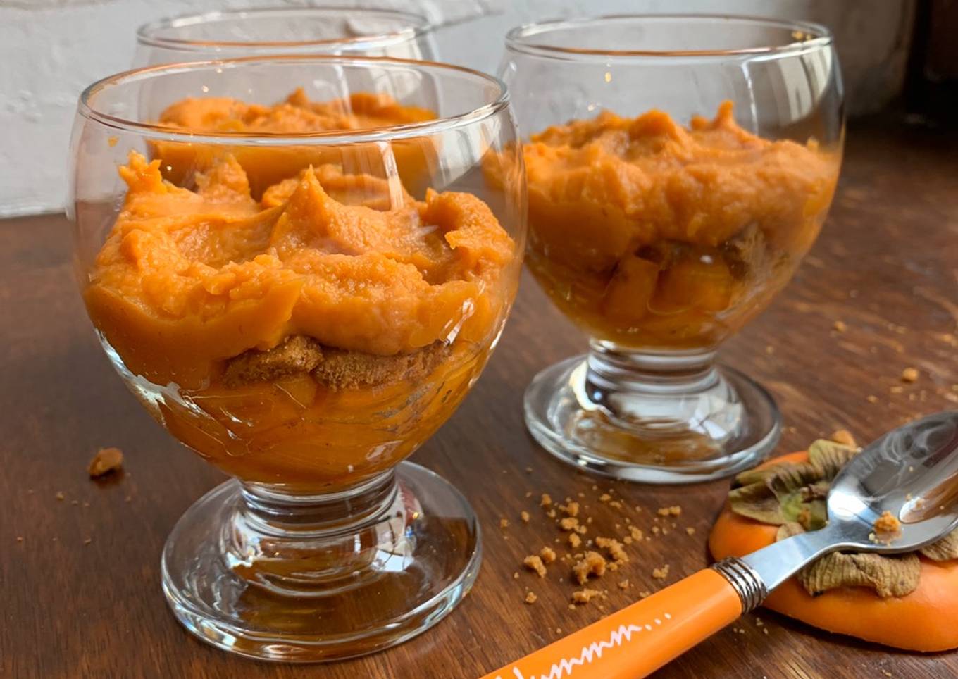 - Eplucher les kakis et les couper en petits dés. Répartir au fond des verrines.