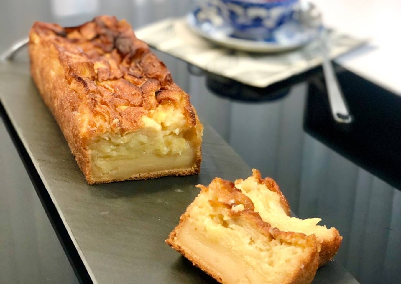 On l’appel gâteau invisible car les pommes imbibent une bonne partie de la pâte ce qui donne à la découpe un résultat très sympa. Il peut se déguster tiède, mais il est encore meilleur froid et le top c’est le lendemain donc pas de soucis si vous souhaitez le réaliser la veille.