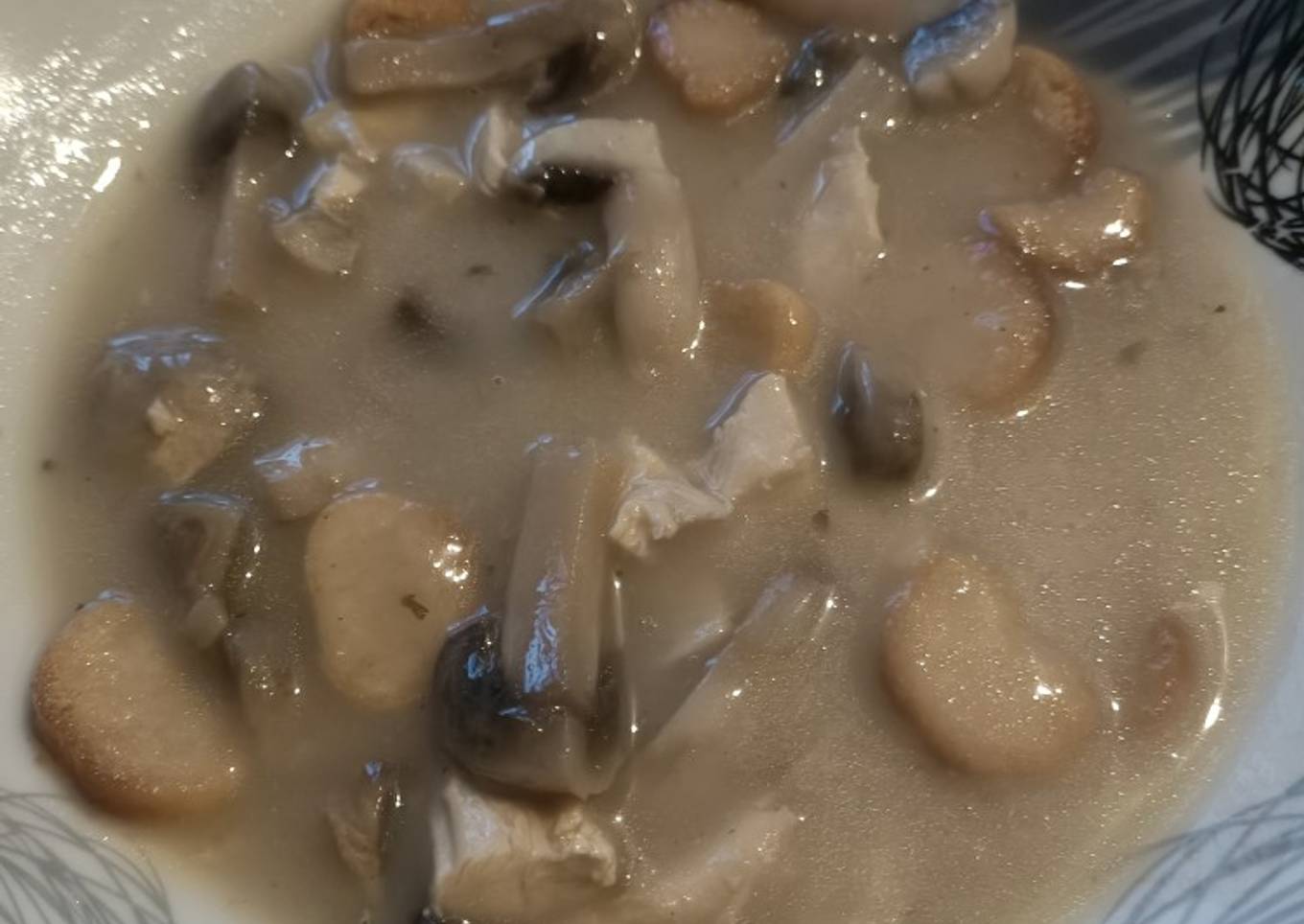 Soupe champignons de Paris et poulet